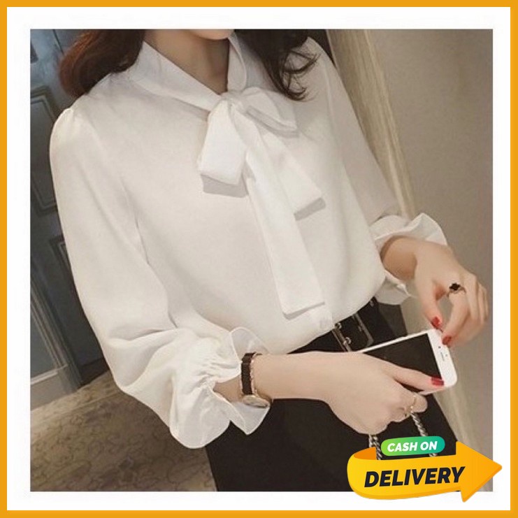 Kemeja kerja wanita / kemeja putih formal wanita / kemeja polos putih kerja atasan blouse casual lengan panjang fashion muslim korea moscrepe.